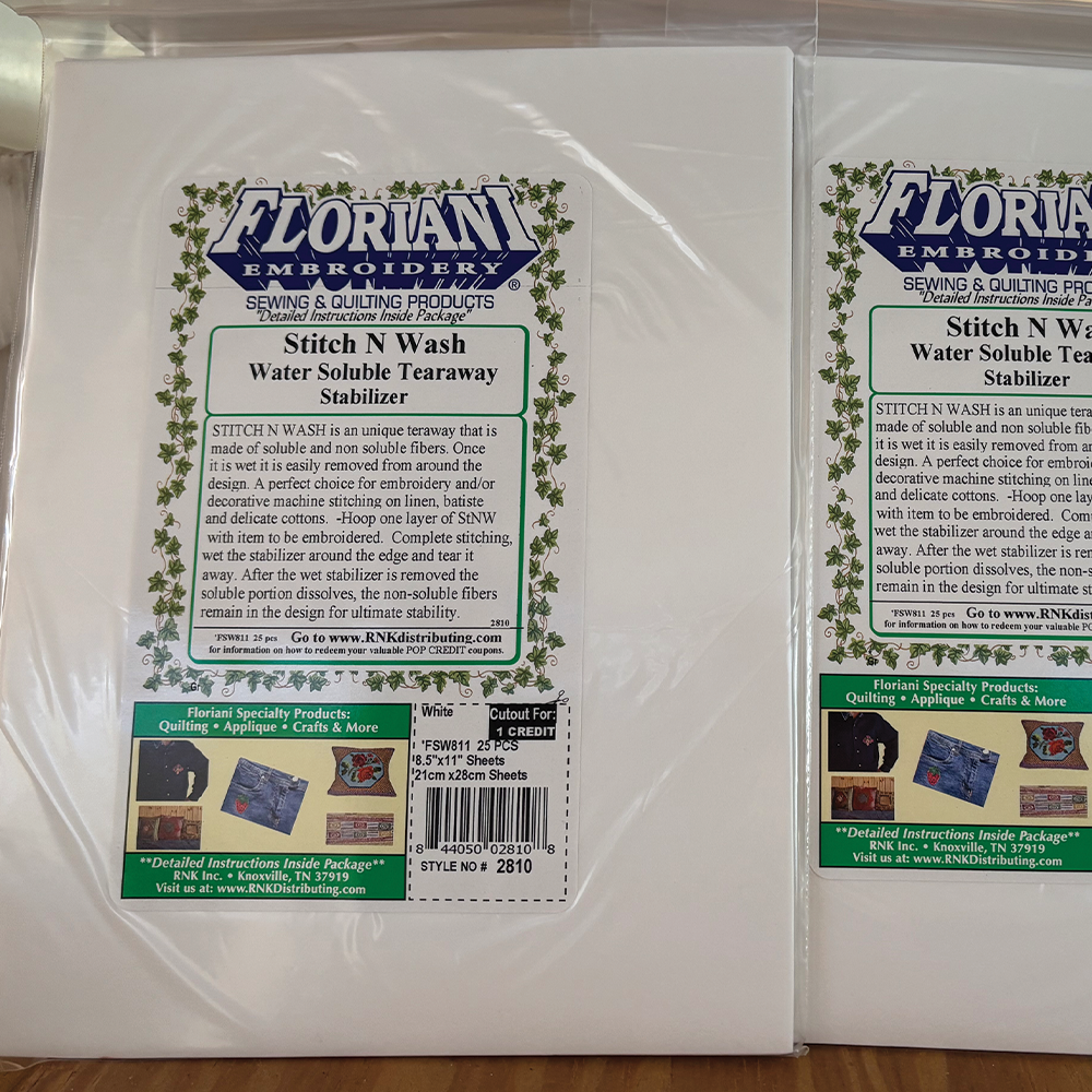 This 1.5 oz tear away stabilizer is ideal for airy, open work type embroidery designs on light cottons and linen. It's unique because it is made up of half soluble and half non-soluble fibers. By wetting the design once it is complete the stabilizer is easily torn away without distorting stitches or harming the delicate fibers of heirloom quality fabrics. The design will retain the non-soluble part of the stabilizer throughout the life of the garment keeping the embroidery looking smooth. Any remnants of the stabilizer around the design will wash out in the laundry. Try the new fusible version of Stitch N Wash® when doing embroidery on loosely woven versions of the fabrics mentioned above that tend to shift during the hooping and embroidery process. By fusing the Stitch N Wash® on to the back of the fabric, it will aid in keeping the fabric taut. This version also eliminates the need for basting or messy spray adhesives.