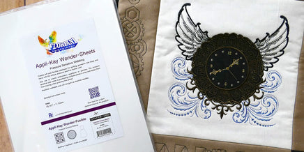 Floriani Appli-kay Wonder is a specialized webbing material which is fusible on one side and sticky on the other! Use for traditional or machine embroidered appliqué to hold pieces in place while you stitch without gummy needles! Enjoy the soft and flexible texture of Appli-kay Wonder when layering pieces. The pressure sensitive side makes positioning small detailed pieces a snap! Also use to hold free standing embroideries or patches in place while you stitch.