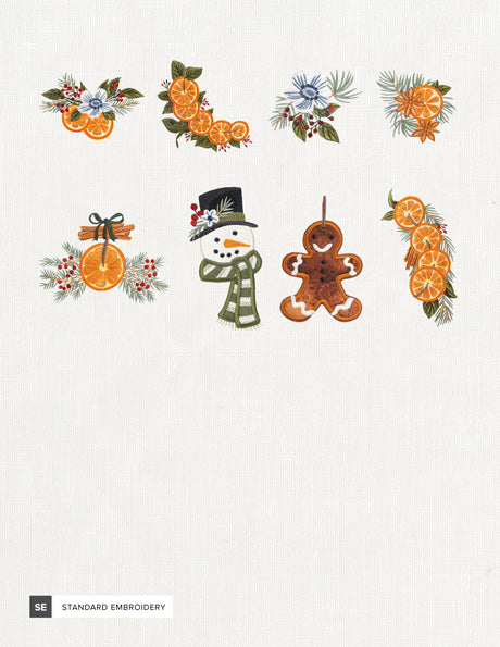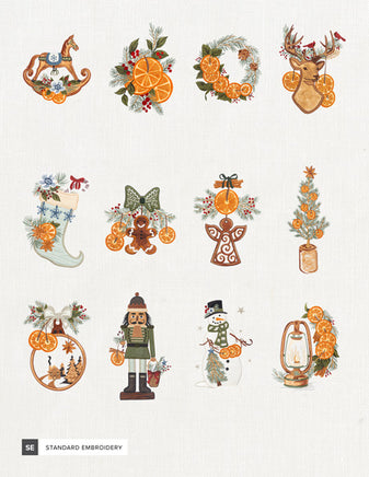 Holiday Spice uses a mix of earthy and muted tones to recreate those cozy holiday feelings. Add these designs to a variety of project items—such as throw pillows, tote bags, wall hangings and even clothing—to keep the holiday seasons cozy. These 20 designs will wrap up those comforting feelings with a stunning combination of appliqué and embroidery!