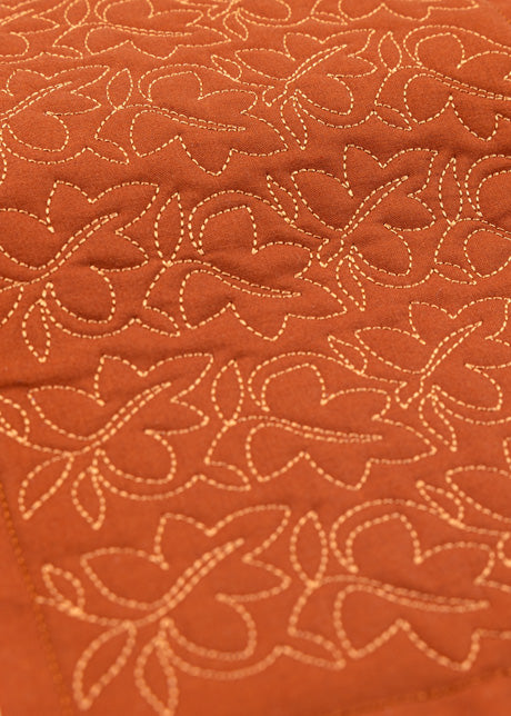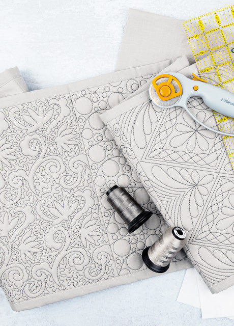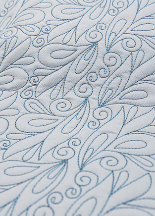 Quilt blocks are so versatile, we can even use them for home decor! Each block features free motion-inspired bean stitches to mimic the look of modern hand quilting. A few extra layers of batting under the base fabric add a beautiful “puffy” appearance that really emphasizes the embroidery. We love turning our blocks into everything from quilts to tote bags and even home decor! Piece a row together, then add a backing and binding around the edges to create a simple but beautiful table runner—or wall hanging!