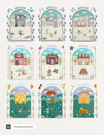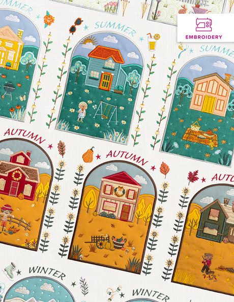 The changing of the seasons is always a sight to behold! From tulip bulbs poking out of the soil in early spring to the first snowfall of winter, it’s hard to pick which time of year we love the most! With this collection, there’s no need to play favorites—you can stitch all the seasons! Inspired by traditional needlepoint artwork, these charming designs feature all types of homes, highlighting the joys that come with the changing of the weather throughout the year. Each of the 4 seasons has 3 house designs to choose from, with lovely borders accented with seasonal motifs like umbrellas, flowers, and more. There are 4 sizes for each design included, with the smallest design requiring a 6" x 10" hoop or larger.