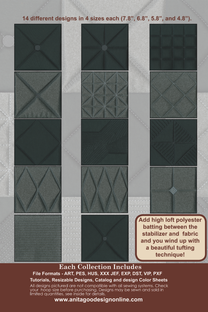 PLEASE NOTE: This item is a digital download, including PDF tutorial and collection design files in all machine formats; it is not available on disc.
