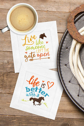 Grab your cowboy hat and riding boots, these 6 horse-themed typographic designs are perfect for equestrian eccentrics. Easily and quickly stitch the standard embroidery designs onto koozies, coasters, napkins, and even on shirts or jackets!
