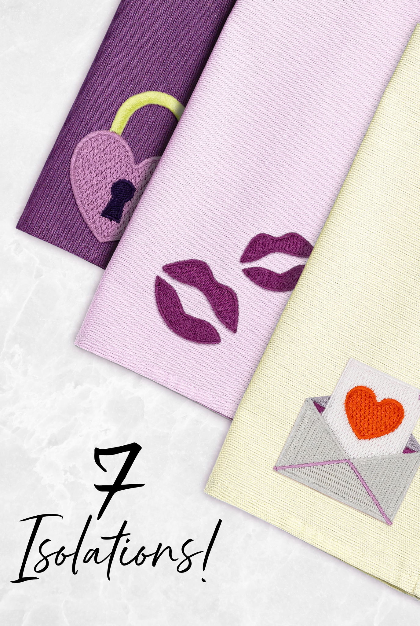 Who says Valentines Day has to be just pink and red? We've branched out of the norm to bring this adorable collection to life with our own spin of purples, oranges, and even neons—embroidery is only limited by your own imagination! With multiple sizes and 7 isolations included, these designs can be incorporated in many different ways. Make seasonal decor, gifts for your loved ones, or unique linens for parties! Whether you go traditional or experimental with your color choices, Hugs and Kisses is a heartwarming and versatile collection to add to your library.
