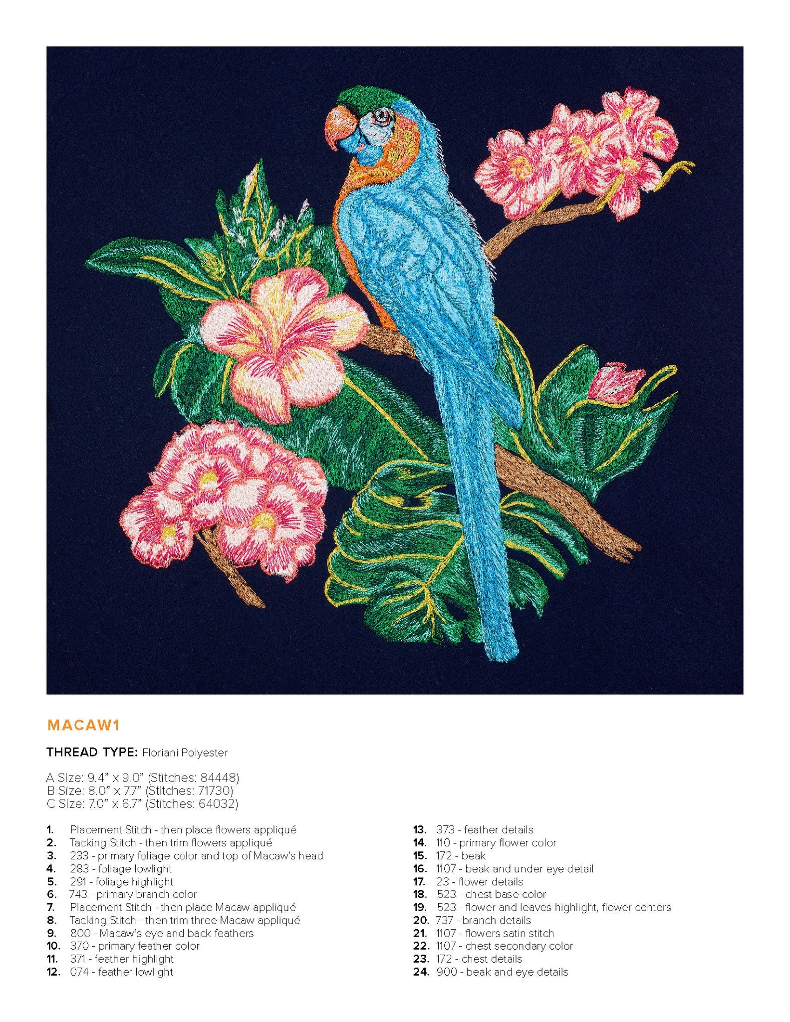 This Macaw parrot design practically flies off the fabric with its hidden appliqués boosting bold hues! Add this feathered friend anywhere you want a pop of vibrant color or tropical ambiance.