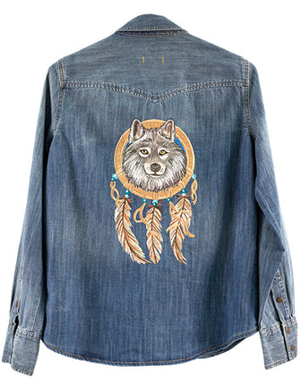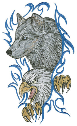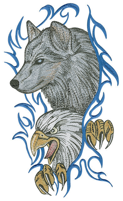I created two different versions of most of the pieces of art; the first was a realistic version full of layers and shading. The second was a charcoal sketch style of it so you can see how beautiful the design is in one color. All of the large wolves actually have a layer of appliqué in it as the base. You won’t even notice it when the design is finished but it keeps the stitches from sinking into your fabric while minimizing stitches as well. The designs all started out as pencil sketches and it was up to the creative team and I to make them come to life. The designs all come in multiple sizes.