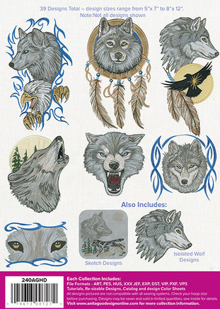 The request I get the most often when I travel around the country is realistic animals and I have digitized numerous collections over the years. Wolves has been requested a lot lately so I decided after a lot of deliberation on which animal to do next I chose wolves. Instead of releasing a collection with 20 or so small designs I decided to do fewer designs but make them larger so that I could digitize even more detail into them.