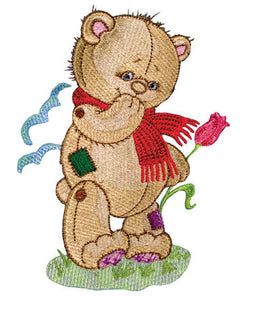 EME DESIGNS Shy Teddy with Flowers (Blossom) $10.00
