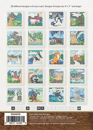 20 Different Designs in 6 sizes each. Designs fit hoop size 5"x7" and larger.