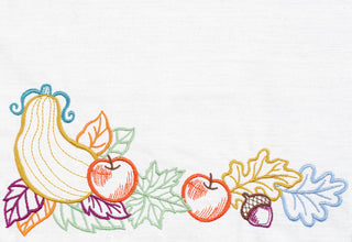 Jazz up your tables this fall with these 6 fresh and fun corner designs! Challenge your creativity with funky colour palettes for unique and eye-catching results. Whether you prefer realism or whimsical colours, this delightful array of autumn-inspired designs can work for any occasion or tastes. Guests will love seeing these flourishes brighten placemats, tablecloths, towels, and napkins at parties and holiday gatherings!