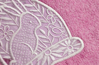 We took the simple idea of a handy, reusable bag and added in flair and dainty details that gives this collection a WOW factor! The background stippling adds texture and accent details to whatever fabrics you choose! Vinyl and organza appliqué are what gives the bag windows their clear, “glassy” effect!