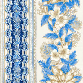 TGZ RK16564-4 Holiday Flourish - Blue/Silver/White (per Metre) $18.00