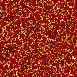 TGZ RK16561-91 CRIMSON Holiday Flourish - Red/Green/Gold (per Metre) $17.00