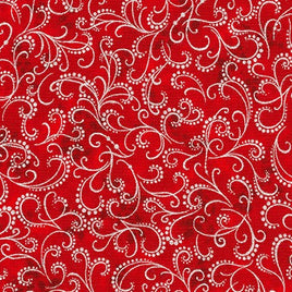 TGZ RK16561-93 SCARLET Holiday Flourish - Red/White/Silver (per Metre) $17.00