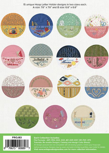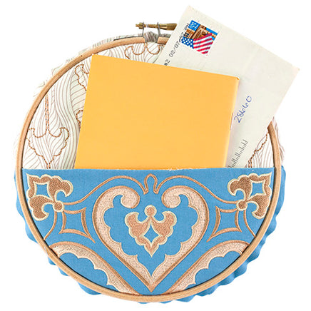 This Projects Collection of Hoop Letter Holders gives you a great way to store some of your favorite items! With a variety of designs to choose from, you’ll be able to pick the best fit for your home or office. From love notes to recipes, sunglasses to sewing notions, there is a Hoop Letter Holder design for everyone. We have placed the completed design into a wooden hoop that is perfect for a wall hanging and also gives the holder a classic embroidery look.