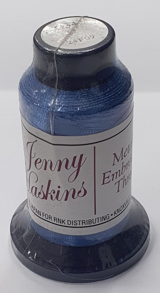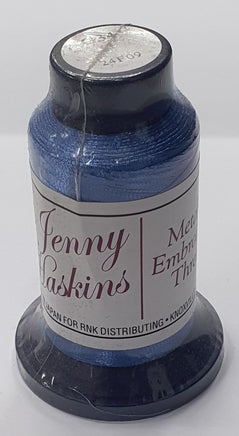 Many embroiderers will not attempt to use Metallic Thread. They have been frustrated time and time again with broken threads, broken needles and ruined garments. Finally, Jenny Haskins has introduced the perfect metallic embroidery thread designed to be used at high speeds on most machines. The Jenny Haskins Premium Metallic Threads are created with a very strong inter core made of polyester. The polyester core is coated with brilliant metallic colors but then it is coated with a special lubricating hardener to prevent the metal from flaking. This special lubricant also allows the Jenny Haskins' Metallic Thread to flow evenly and without restriction through your machine. Most metallic thread manufacturers will advise users to replace their machine needle with a large eye needle before using their metallic thread, but with Jenny Haskins' Premium Metallic Thread is not necessary. Use the same needle as used for regular polyester or rayon threads.