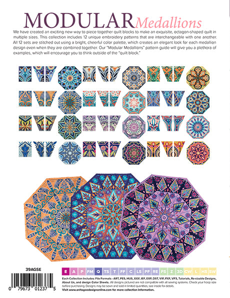Anita Goodesign is constantly growing with the introduction of new, innovative techniques and projects for our customers to create through the art of home embroidery. This “Modular Medallions" Special Edition is no exception! We have created an exciting new way to piece together quilt blocks to make an exquisite, octagon-shaped quilt in multiple sizes.