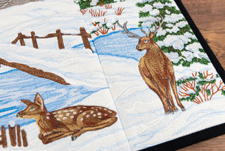 Picture this serene scene: a single steeple white church nestled in the snowy woods. Its bright red doors and glowing golden light from inside add specs of warmth and colour to the wintry display, while two deer take a rest on the banks of a babbling brook. Our Winter Church Tile Scene is a stunning Special Edition that is sure to bring a sense of calm and peace to anyone that lays eyes on it! Constructed with only 9 rectangular quilt blocks offered in 6 sizes, this beautiful scene is the perfect project to bring a bit of seasonal serenity to your home all winter long.