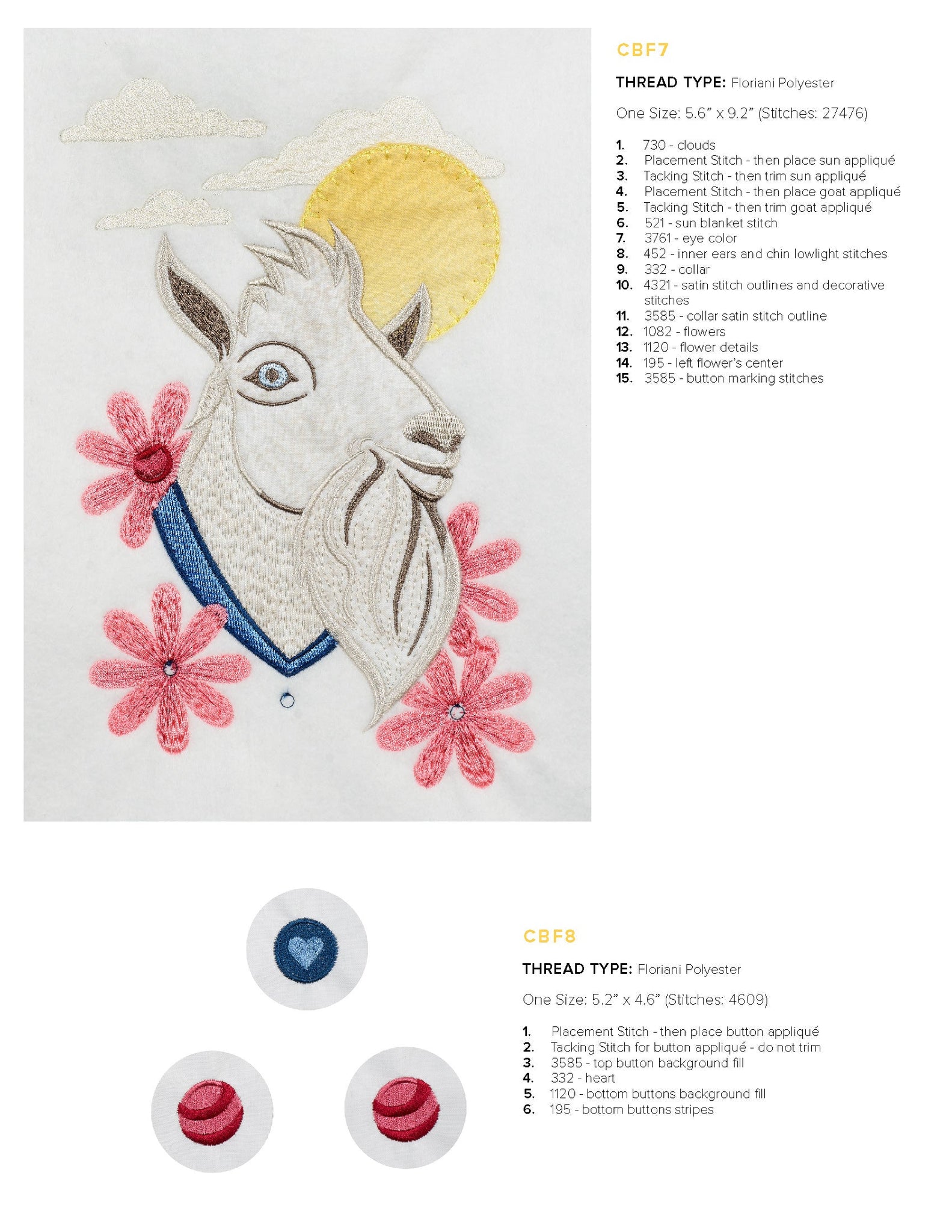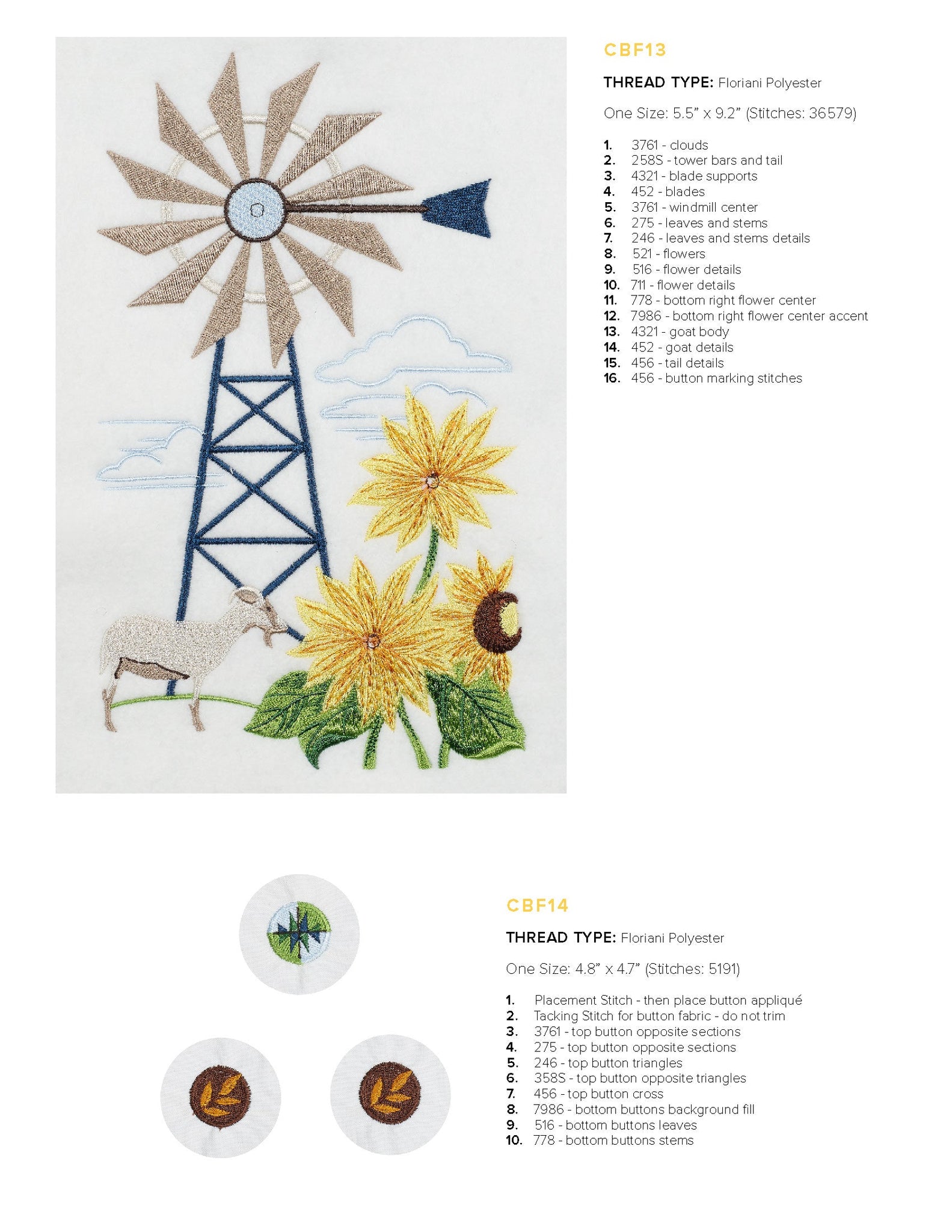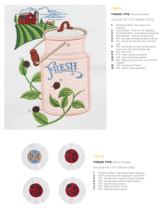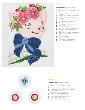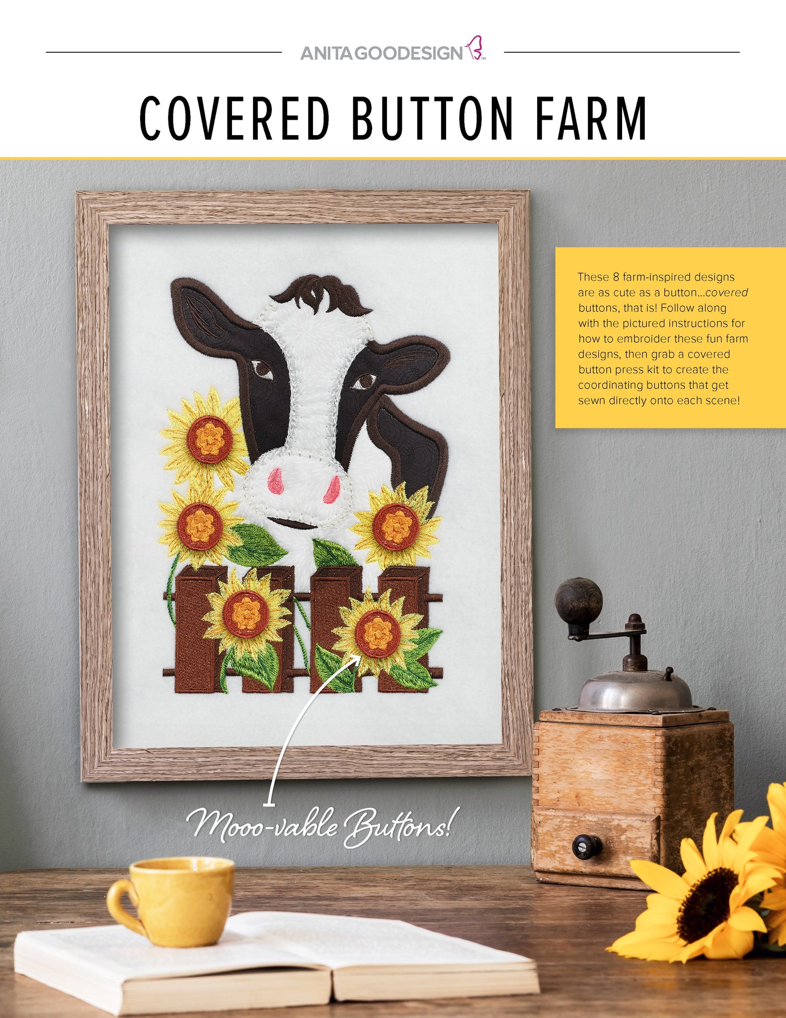 These 8 farm-inspired designs are as cute as a button...covered buttons, that is! Follow along with the pictured instructions for how to embroider these fun farm designs, then grab a covered button press kit to create the coordinating buttons that get sewn directly onto each scene!