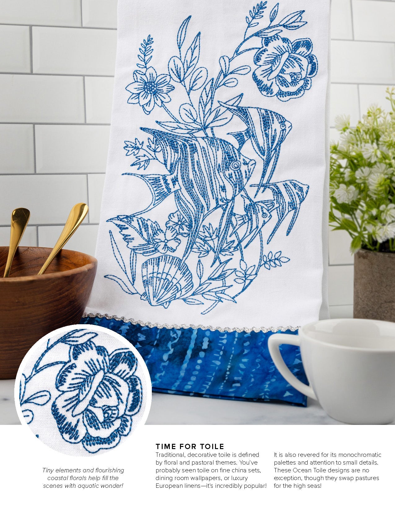 Dive into these five different sea creature designs—portrayed in a classic, monochromatic toile style! With just one machine step and one thread color, adding these coastal creations to towels, beach totes, and accessories is a breeze! The highly detailed toile art style makes these designs perfect for elegant additions to kitchens, washrooms, guest linens, or any room that needs a touch of ocean love!
