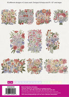 10 Designs in 3 sizes each. Designs fit hoop size 8"x12" and larger.