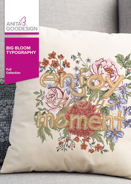 This stunning collection is designed to make a big statement, and we know it’ll do exactly that! Specially designed and digitized to stitch within 8” x 12” or larger embroidery hoops, Big Bloom Typography is a collection of epic proportions!