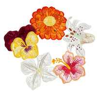 At this years embroidery party we have been stitching one of these flowers in class. The project goes along with a contest of which group can be the most creative. I am always amazed at what our attendees stuff into their flowers. We decided to create not only 20 free standing flowers but 20 quilt blocks to go with them. Each flower uses assorted confetti to match the colour of the flower, the end result is truly beautiful, you will love creating these designs.