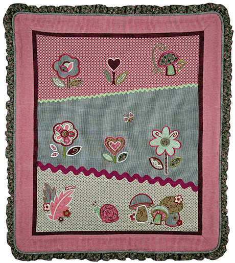 Share your love of the outdoors with your child and decorate their nursery with Baby Patchwork Garden. As always we give you all the designs you need to create projects for the nursery, like bumpers, diaper bags, wall hangings, mobiles and quilts. Some of the elements in this collection include mushrooms, snails and flowers. A lot of big beautiful appliques and tutorials to walk you through every step of every project. Enjoy!