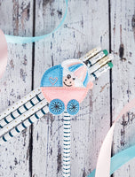 Don't be tardy for the party! Take every celebration to the next level by including these show-toppers to your event decor. From holiday to birthdays to new babies, this collection has you covered! This project offers a tutorial with easy to follow step-by-step instructions. There are two hoopings involved in this collection; one design for the back and one for the front. There is no additional sewing required, as this project is completed entirely in the hoop.