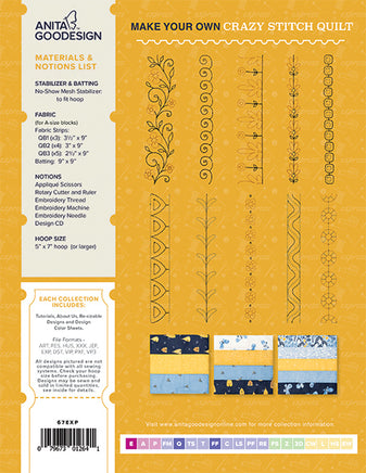 Want to design your own quilt block? Go CRAZY! With Make Your Own Crazy Stitch Quilt, we give you 3 different folded-fabric quilt blocks to use as your base. You also receive 10 different crazy stitch designs to decorate your block. Let your artistic side take over as you make the decisions on what each block in your quilt will look like.