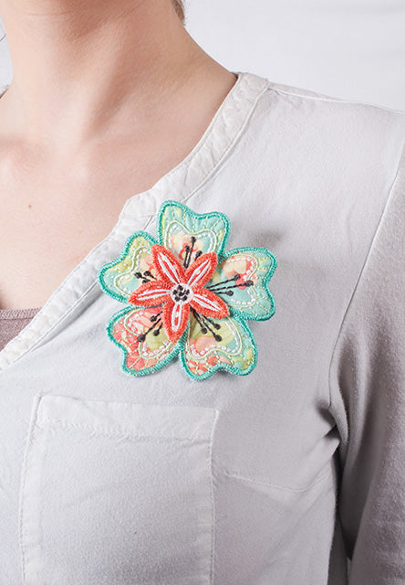 This unique project of 3D embroidered flower brooches will certainly spice up any outfit. There are a total of 8 different flowers that are made and attached completely in the hoop, all you have to do is add a pin! For these designs, there are two easy hoopings: the first with wash-away to create the flowers and the second with tear-away to attach the brooch accent. The flowers are made individually then layered to create the 3D style. By using the wash-away stabilizer, the edges are finished with a clean satin stitch and no appearance that there was stabilizer at all!
