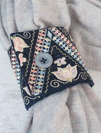Creating the perfect fashion accessory has never been easier! Everyone loves scarves. They add the perfect finishing touch to an outfit while still being functional and cozy. Sometimes scarf tails tend to get in the way of work, or perhaps you just want a cleaner, more sophisticated look. These fun and fashionable scarf loops are created effortlessly in the hoop and finished off with a button to stylishly secure your scarves.