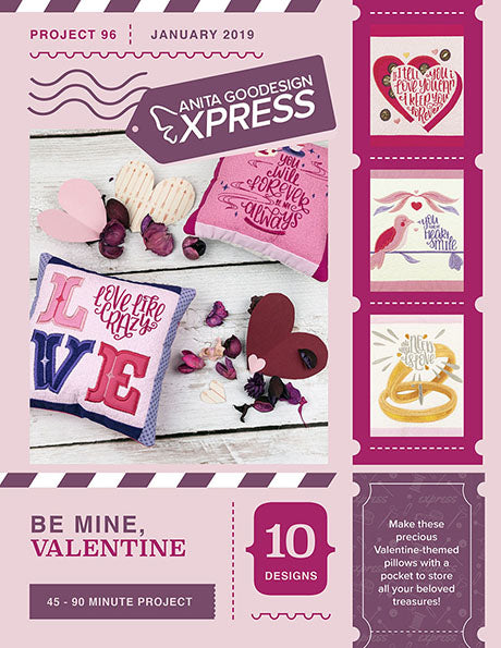 These heart-felt pocket pillows are created in the hoop and finished with minimal hand sewing needed! With their folded fabric borders and quilted finishing touches, these small pillows are positively precious. Be Mine, Valentine pillows are perfect for that special someone. Hide a sweet treat within the pocket and pair it with a handwritten note to make a quick and thoughtful gift, perfect for Valentine's Day, anniversaries, or any other occasion!