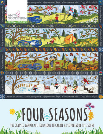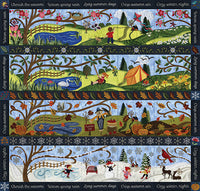 Each season is created using 5 blocks and our landscape quilting technique. Appliqués are used to divide the backgrounds between earth and sky, and beautiful details are embroidered to give each scene it’s unique features. Once the blocks are stitched, they can be sewn together to complete the scenes. Stitch all 4 seasons together using the included typographical and icon sashing blocks to create a one-of-a-kind wall tapestry that will be cherished for many seasons to come.