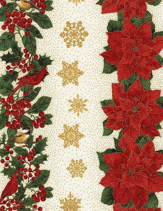 TT4278A Holiday Poinsettia & Birds Border Cream & Gold Metallic (per metre)
