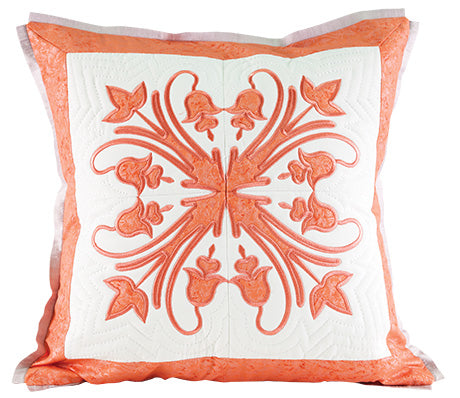 I have been to Hawaii many times and have always been impressed with traditional Hawaiian quilts. The are made using applique, most often in vivid colors on a white background. The art style is radial symmetric patterns with unique hand picked stitches. No two quilts are the same, which makes them truly beautiful. I wanted to take inspiration from those quilts and create our Hawaiian Quilts collection that uses 1 design that is stitched 4 times and rotated to create a 4 block symmetrical design. Finished 4-block quilts can be then stitched into a pillow, or multiples can be stitched together to form a larger project. The designs all use applique with a bold stitch around it for a beautiful end result.