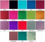 Each Solid Colour is listed separately for Ordering - There are a total of 22 Colours Available - as follows Azalea, Black, Blue, Blue Turquoise, Bronze, Burgundy, Copper, Cranberry, Fuschia, Gold, Green, Lime Green, Orange, Pink, Purple, Red, Satin Green, Satin Peach, Silver, Teal, Turquoise, White.