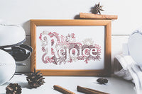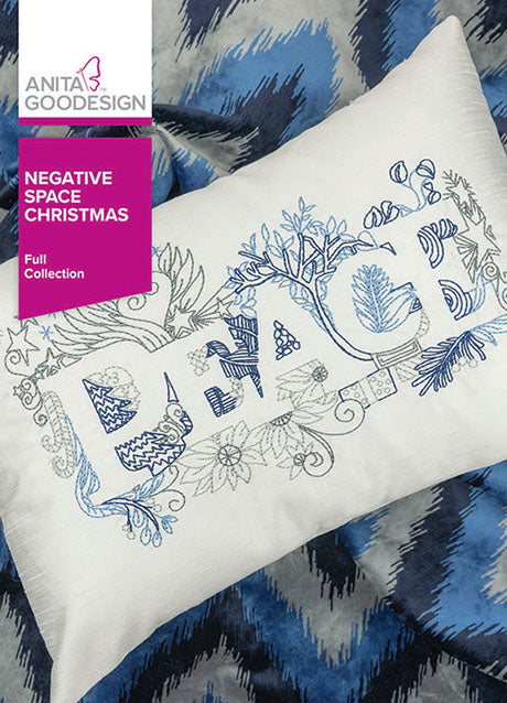 In art, Negative Space represents the space between, and uses detail around the subject to emphasize it. It’s almost like an image within an image! This is our modern take on some classic Christmas sayings. Each of the 20 designs features elaborate straight stitches, creating motifs and flowers and festive holiday shapes that surround each letter to create the Negative Space. Every inch has intricate details such as stars, bells and presents, making this collection versatile and timeless. The tonal colour pallet brings a modern design touch to the ancient tradition of Christmas. Perfect for sweaters, pillows, and framed art alike, deck the halls with the Negative Space Christmas collection.