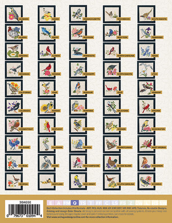 Each of the 50 states has a specific state bird and flower often chosen because of their significance to each state’s history. Come fly with us as we stitch out 50 different birds and flowers each hand drawn and digitized to perfection! The entire collection comes in 5 different sizes and is fully interchangeable with our Mix & Match Collections.